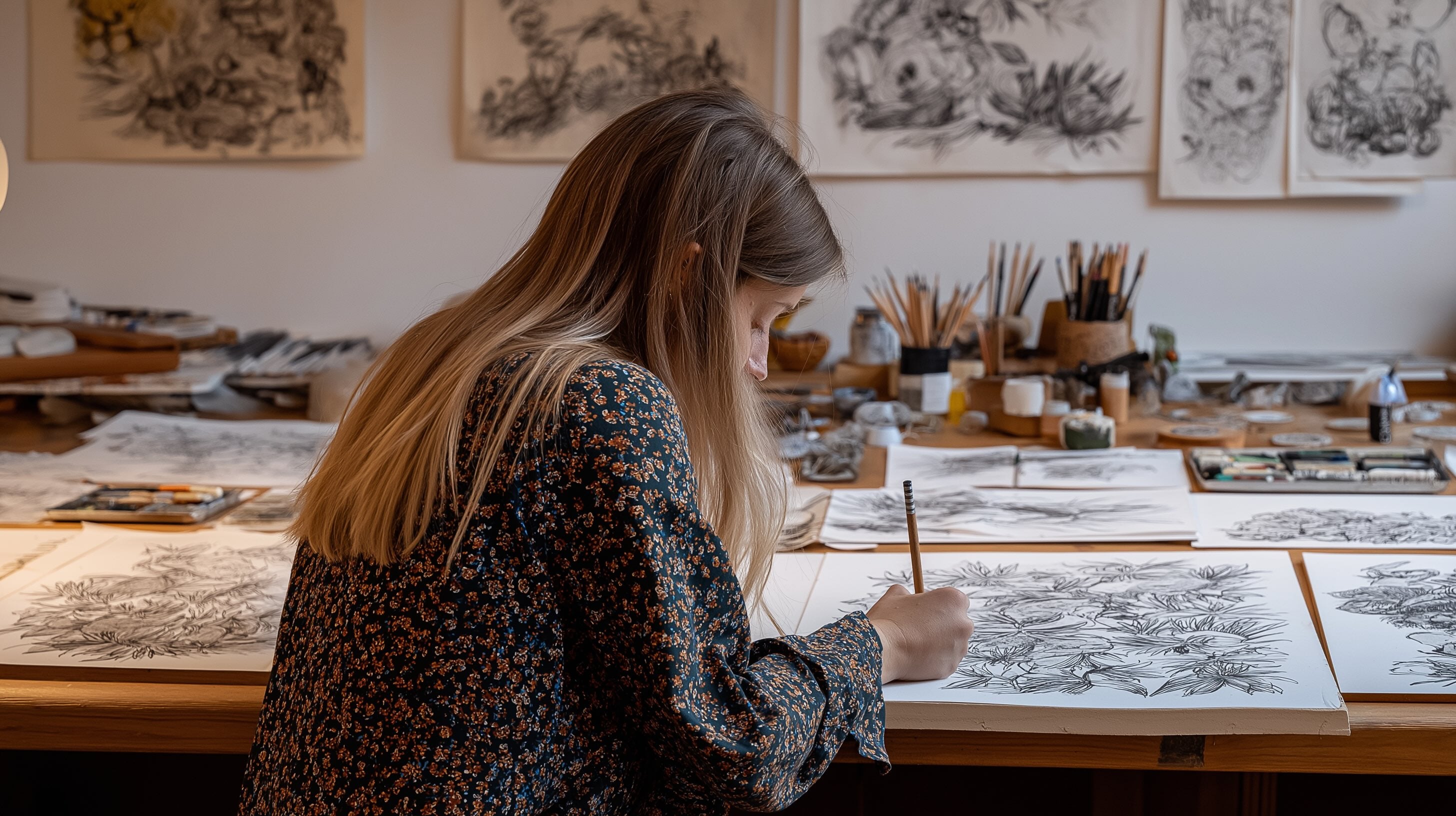 The artist creates hand-drawn or digital motif sketches.